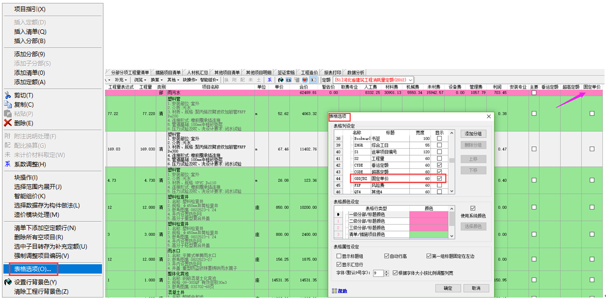 答:分部分項(xiàng)界面右健,表格選項(xiàng),找到固定單價(jià),把顯示勾選上,回到分部分項(xiàng)界面哪個(gè)清單要固定,在對(duì)應(yīng)的后面列勾選 。