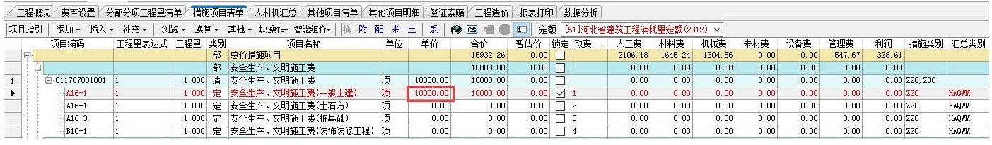 答:可以在措施項(xiàng)目清單界面通過鎖定功能實(shí)現(xiàn)將安全文明費(fèi)設(shè)置為固定費(fèi)用,即直接在定額行單價(jià)那輸入固定的數(shù)值。