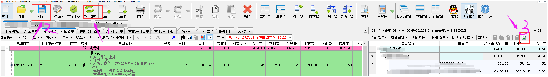 答:針對(duì)與p8qdxm的非單文件項(xiàng)目工程,它是跟單位工程數(shù)據(jù)聯(lián)動(dòng)的。如果出現(xiàn)了數(shù)據(jù)沒有同步匯總,需要按照以下步驟操作。 第一步打開單位工程點(diǎn)擊匯總刷新,然后點(diǎn)擊保存。如果保存按鈕是灰顯,說明數(shù)據(jù)可能沒有變化會(huì)導(dǎo)致正常匯總不了??梢圆扇‰S便改動(dòng)一下數(shù)據(jù)再改回的方法,在保存按鈕綠顯的狀態(tài)下點(diǎn)擊保存。所有單位工程都刷新保存了之后,關(guān)閉單位工程,最后一步就是回到項(xiàng)目工程中點(diǎn)擊重新提取數(shù)據(jù)。 如下截圖所示: