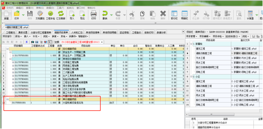 項(xiàng)目文件中含有的所有單位工程的內(nèi)容實(shí)現(xiàn)了一鍵導(dǎo)入,包括了分部分項(xiàng)清單、措施項(xiàng)目清單和其他項(xiàng)目清單部分。 需要注意:EXCEL文件中需要有單項(xiàng)工程費(fèi)匯總表及其對(duì)應(yīng)的單位工程excel數(shù)據(jù)。(主要是為了保證按照相應(yīng)的結(jié)構(gòu)建立生成造價(jià)文件)