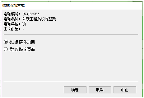 5)、執(zhí)行該命令后,出現(xiàn)措施添加方式((定額計(jì)價(jià)傳統(tǒng)模式除外))。 (1)第一種:創(chuàng)建新措施清單,可選擇添加到單價(jià)措施或總價(jià)措施。如下圖所示: (2)添加到已有措施清單,直接下拉選擇對(duì)應(yīng)清單。如下圖所示