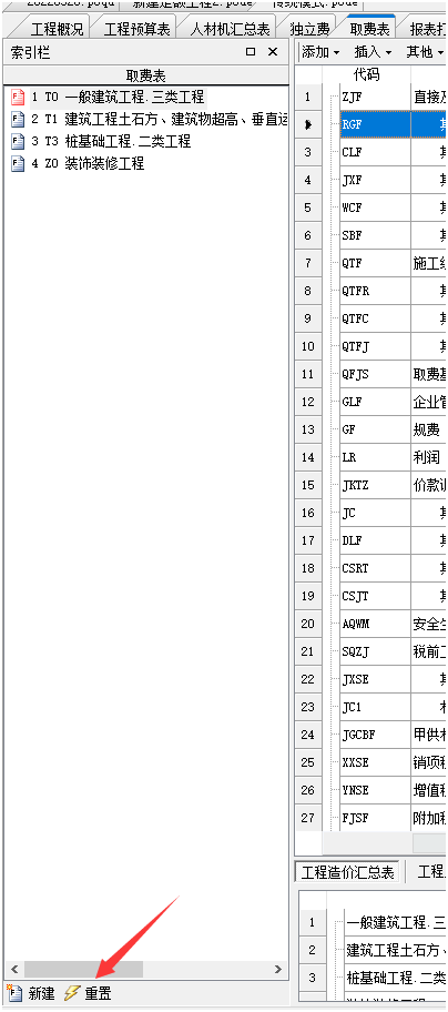 如果不希望文檔屬性或者費(fèi)率重置的時(shí)候會(huì)將固定好的安全文明施工費(fèi)再重置,則需要將所有的分專業(yè)的安全文明施工費(fèi)的定額行都固定。如下截圖: