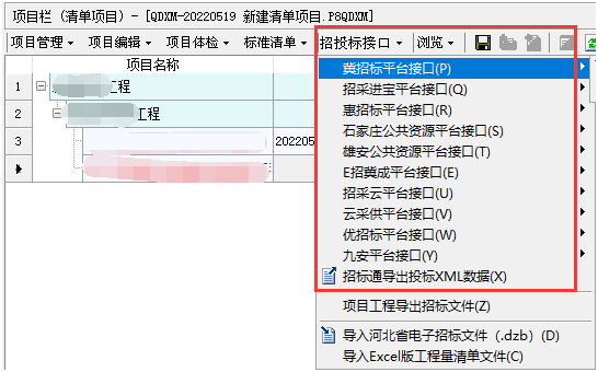 答:在建好的項(xiàng)目工程中,點(diǎn)擊招投標(biāo)接口中的“導(dǎo)入Excel版工程量清單文件”按鈕,如下圖所示: