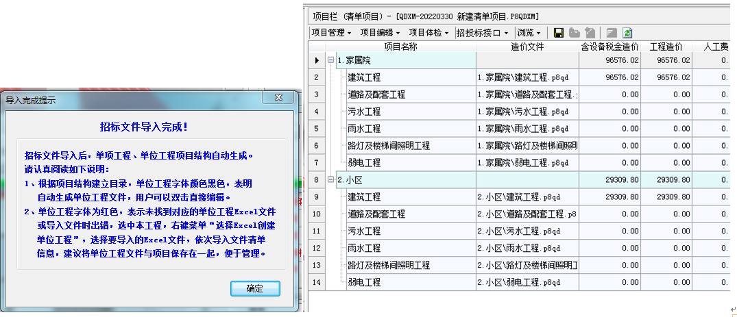 項(xiàng)目文件中含有的所有單位工程的內(nèi)容實(shí)現(xiàn)了一鍵導(dǎo)入,包括了分部分項(xiàng)清單、措施項(xiàng)目清單和其他項(xiàng)目清單部分。 需要注意:EXCEL文件中需要有單項(xiàng)工程費(fèi)匯總表及其對(duì)應(yīng)的單位工程excel數(shù)據(jù)。(主要是為了保證按照相應(yīng)的結(jié)構(gòu)建立生成造價(jià)文件)